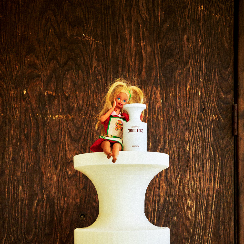 Our upcoming holiday release, Choco Loco, was born from the same philosophy: cocoa powder, cocoa butter, and cocoa liquor, three layers of chocolate built into an overdose of sweetness, warmth, and sensual chaos. A fragrance that fuses softness and wildness, texture and heat, comfort and desire.